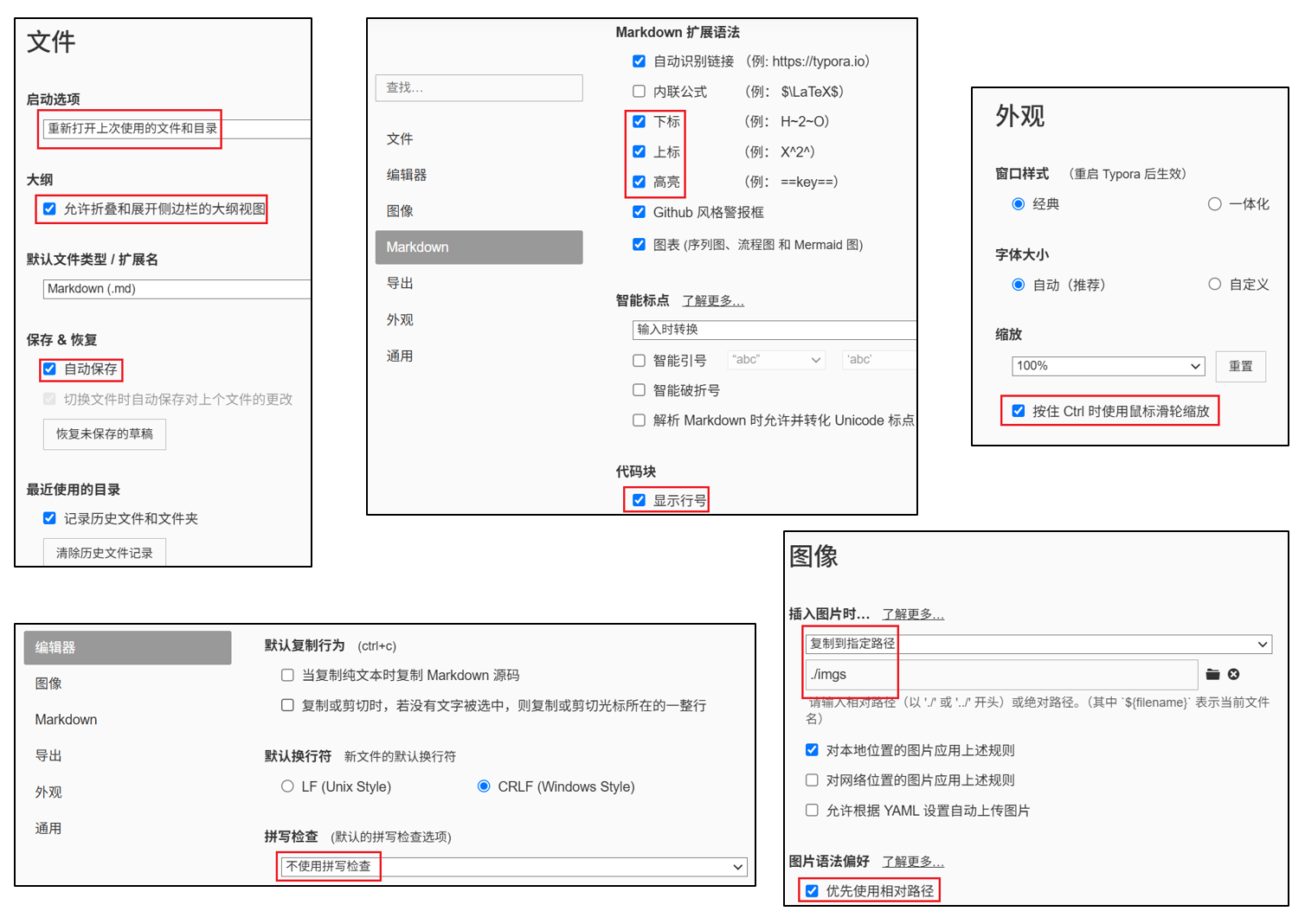 TYPORA操作TYPORA设置按照图片操作即可,推荐不关闭自动更新标题语法标题有6种,对应h1至h6# 一级标题 ### 三级标题 ###### 六级标...